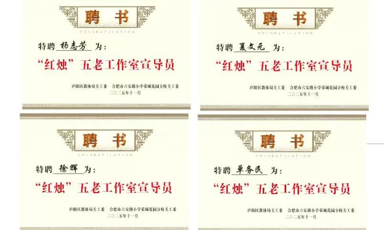 11月30日上午,合肥市六安路小学荣城花园分校举行“红烛”五老工作室授牌仪式,标志着庐阳区传统文化传承工作迈入新阶段。同步启动的庐阳区第二届传统武术站点联赛,成为工作室服务少年儿童成长的首场生动实践。