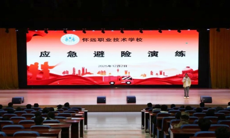 为进一步强化学生安全防范意识与应急处置能力,熟练掌握突发险情下的自救互救技能,12月2日下午,怀远职业技术学校在知辛阁三楼报告厅开展应急避险专题演练活动。活动由政教科副科长戴涛主持。