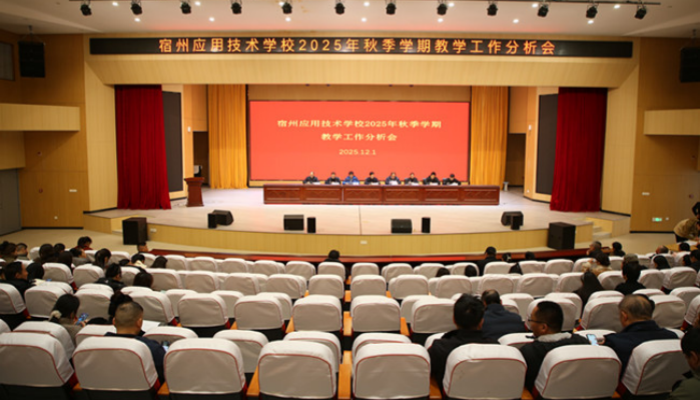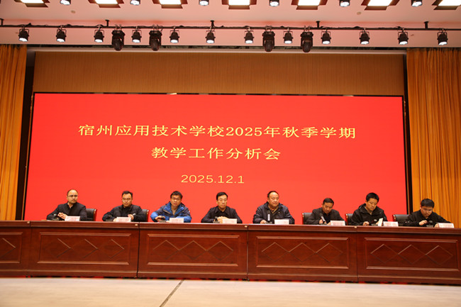 12月1日,宿州应用技术学校召开2025年秋季学期教学工作分析会,副校长王凯,教务主任梁杰、副主任赵曙光、鲍宜成,全体任课教师参会。