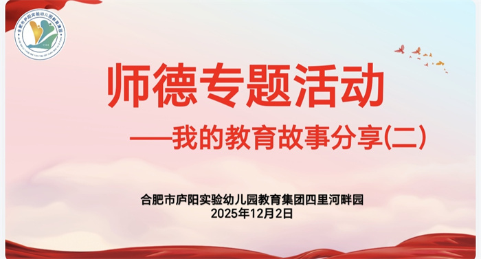 为深入践行立德树人根本任务,弘扬爱岗敬业、无私奉献的崇高精神,2025年12月2日,合肥市庐阳实验幼儿园教育集团四里河畔园开展了“我的教育故事分享(二)”师德师风学习活动。