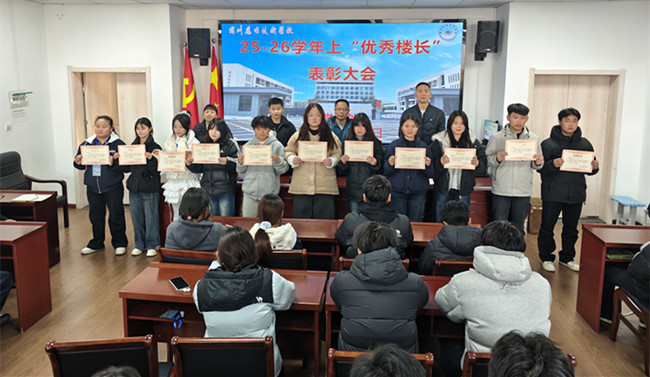 12月3日下午,宿州应用技术学校召开优秀宿舍楼长表彰会议,学校领导、师生代表及物业公司负责人齐聚一堂,共同为校园宿舍管理工作夯实根基。