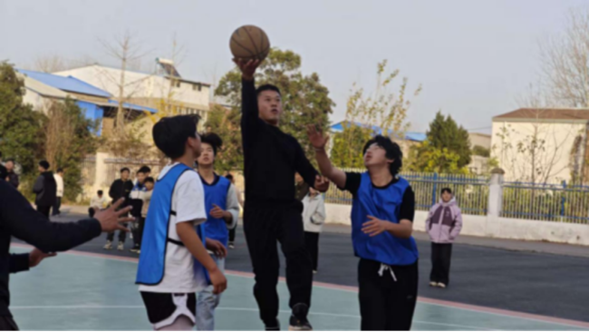 为丰富校园文体生活,深化师生情感联结,践行 “五育并举” 教育理念,涡阳县马店集学区中心学校于 12 月4日下午成功举办首届师生篮球交流赛。本次赛事以 “以球会友、切磋共进” 为宗旨,吸引了九年级学生代表与爱好运动的教师们组成两支队伍同场竞技,用热血与激情为校园增添了浓墨重彩的一笔。