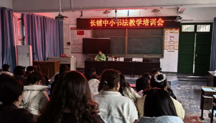 近日,长铺中小选派参加全县中小学书法教育“种子教师”专项培训的老师,在圆满完成学习任务后迅速启动面向全体教师的校本书法教学培训工作,在校园内掀起了传承翰墨文化、精进教学技艺的新热潮。