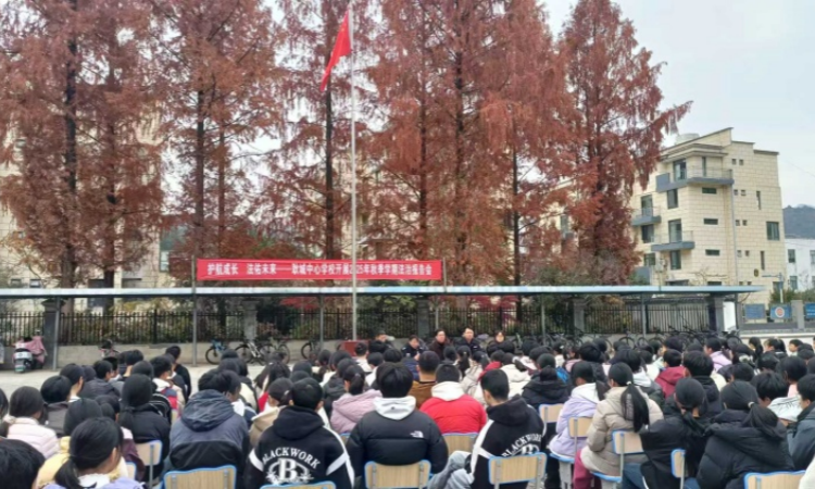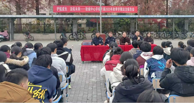 为增强青少年法治观念,营造平安和谐校园环境,12月4日,黄山区耿城中心学校联合镇司法所、派出所等部门为全校师生带来了一场内容丰富、生动深刻的法治教育报告会。报告会在学校小操场举行,全校五至九年级师生共同聆听了讲座。