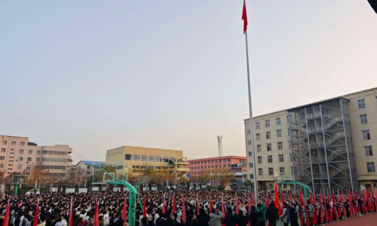 清晨的操场庄严肃穆,全校师生怀着崇敬的心情列队集结。伴随着雄壮激昂的《义勇军进行曲》,鲜艳的五星红旗冉冉升起,全体人员肃立致敬、齐唱国歌,在庄重的氛围中,本次主题升旗仪式正式拉开帷幕。