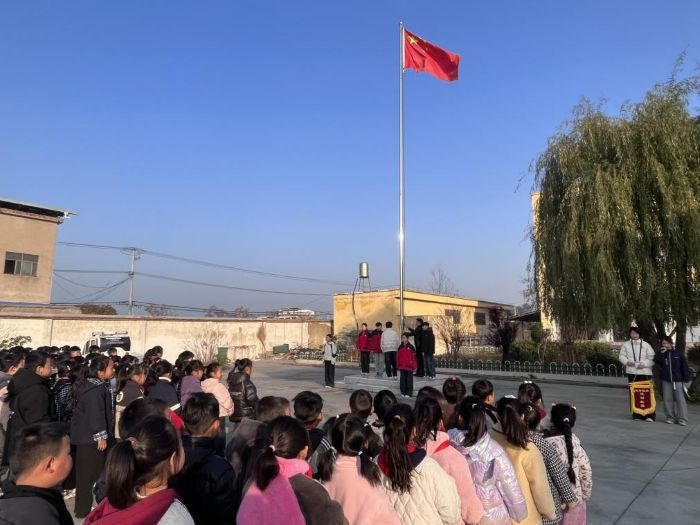 在宪法宣传周期间,学校通过庄重的仪式教育强化宪法尊崇。12月4日国家宪法日当天,全校师生齐聚操场,举行“宪法进校园”主题升旗仪式,师生代表发表国旗下讲话,阐述宪法与成长的意义。随后,各班登录教育部全国青少年普法网,同步参与“宪法晨读”,齐声诵读宪法条文,合唱《宪法伴我们成长》。琅琅书声与铿锵誓言相互交织,让法治的庄严与温度浸润整个校园。