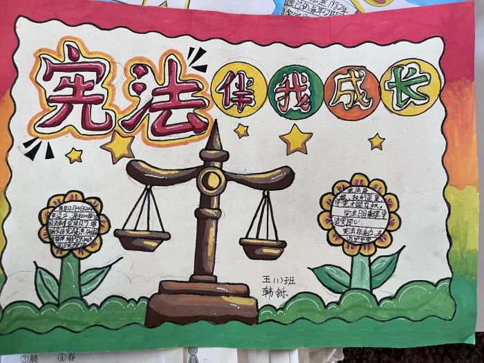 学校鼓励学生动手动脑,在实践中深化对宪法的理解。组织开展“宪法伴我成长”手抄报、主题绘画征集活动,优秀作品在校园宣传栏集中展示。同步推进“宪法小卫士”网络学习和“我把宪法带回家”实践活动,鼓励学生将所学法律知识与家人分享,实现“教育一个学生,带动一个家庭,影响整个社区”的辐射效应。