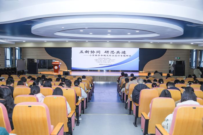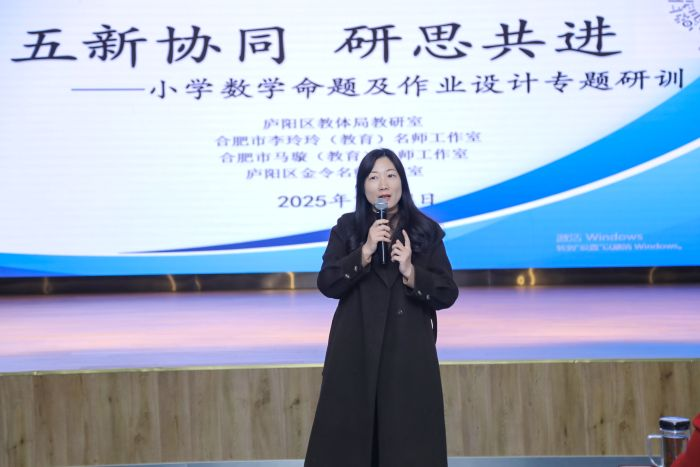 为深化新课标背景下小学数学教学改革,推动命题与作业设计从“知识巩固”向“素养生成”转型,2025年12月4日下午,由合肥市李玲玲名师工作室、马璇名师工作室和庐阳区金令名师工作室在合肥市六安路小学荣城花园分校艺体楼三楼报告厅举办“五新协同,研思共进”小学数学命题及作业设计专题研训活动。来自全区和工作室共计200多名老师都加入了这场教育盛宴,共同探讨小学数学命题与作业设计的创新路径。
