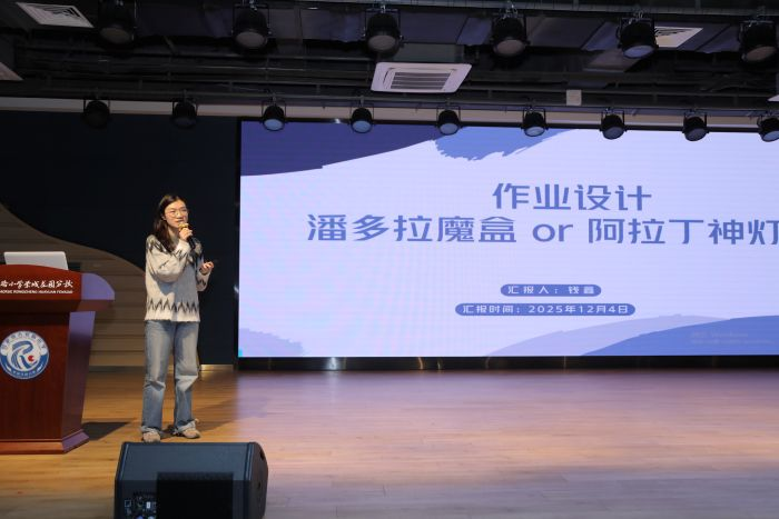 合肥市六安路小学中铁国际城校区钱鑫老师作为安徽省作业大赛一等奖的获得者,给老师们进行了高位的引领。针对会前《小学数学教师作业设计现状调研》中教师反馈的在作业设计中的一些困惑、作业设计中的心得和小妙招以及期待听到作业设计哪些方面培训等,以《作业设计:是潘多拉的魔盒or阿拉丁神灯》为题,从困境、寻路、探索、思考四步展开剖析,为老师们提供了可操作、可借鉴的框架。