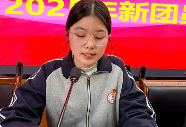 新团员代表张艺馨同学发言,表达了加入团组织的自豪与激动,并承诺将以团员标准严格要求自己,努力学习文化知识,积极参与实践,不负青春,不负期待。