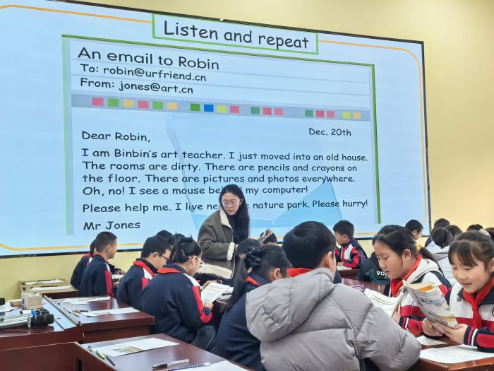 12月11日,英语与德育课堂聚焦学生综合能力培养。葛爱华老师的英语课《Read and write——An email to Robin》,以“给Robin写邮件分享生活”为任务驱动,先通过对话教学引导学生掌握邮件格式与核心句型,再让学生结合自身经历自主撰写邮件,鼓励学生大胆表达,全程围绕“语言运用”核心目标,有效提升学生的英语读写与跨文化交际能力;陶莹老师的《防校园欺凌,创和谐校园》德育课,通过播放校园欺凌警示短片、分析真实案例、开展“欺凌情境模拟应对”“和谐班级心愿贴”等活动,让学生清晰认识校园欺凌的危害,掌握自我保护与互助友爱的方法,为学生筑牢安全成长防线,落实“健康生活”核心素养。