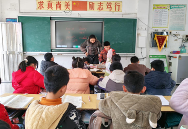 初冬的暖阳洒在宿松县陈汉乡中心小学的教学楼前,楼道里常常响起一阵清脆而坚定的“笃笃”声,一道特殊的身影架着双拐不断向上挪动,裹着厚重石膏的左脚在空中前后摆动——她就是该校601班数学教师董赛君,用双拐为校园增添了一道靓丽的风景。