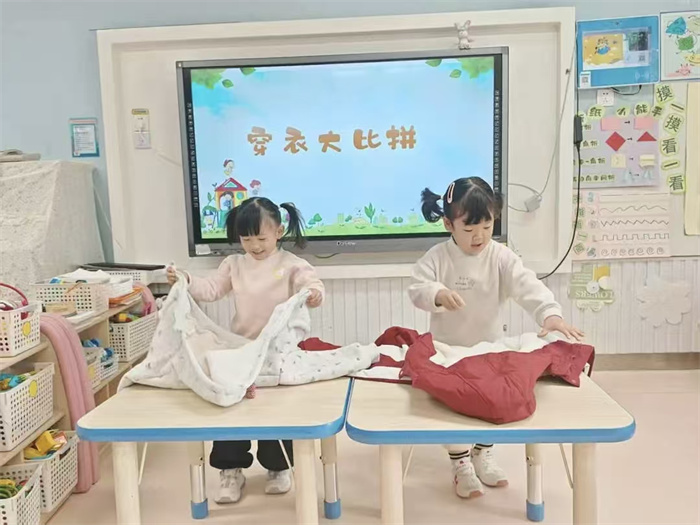 为了激发幼儿穿衣的主动性,小班年级组开展了“穿衣大比拼”活动,看看谁的速度快吧!