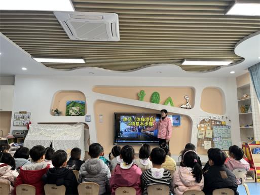 孩子们对跳马产生了浓厚的兴趣,于是想尝试玩跳马,怎么跳?怎么玩呢?在老师的带领下,孩子们观看视频一起学习跳马小技巧。