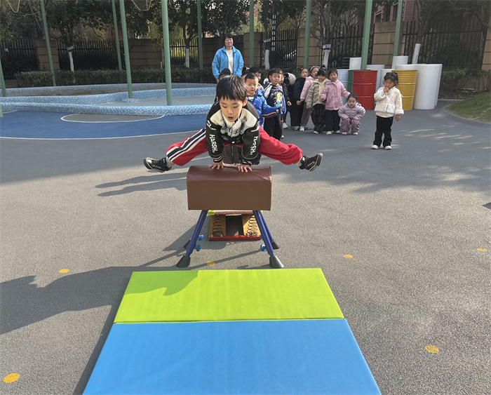 在集体讨论和实践中,孩子们一次次提出问题,解决问题。而在此过程中,孩子们对“跳马”热情不减,是因为我们充分尊重孩子的学习兴趣与求知欲,并没有单纯追求技能的学习,而是在游戏中融入相关技能的练习,引导孩子在游戏的过程中去体会、去探索、去交流,层层递进式的攻克跳马时所遇到的各个困难,从而体验成功的喜悦,享受运动的乐趣。