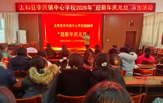 为全面落实立德树人根本任务,丰富校园文化生活,营造祥和节日氛围,集中展现校园艺术教育的丰硕成果。12月16日,太和县李兴镇中心学校在四楼会议室举行“美润校园•艺彩飞扬”2026年迎新年庆元旦文艺汇演。学校领导与师生代表欢聚一堂,共同观赏了这场精彩纷呈的视听盛宴。