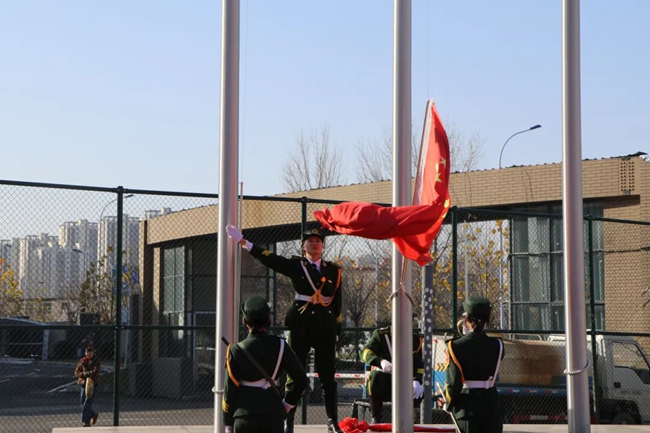 伴随《义勇军进行曲》奏响,鲜艳的五星红旗冉冉升起,全体师生肃立注目。随后,由25级作物对口班张昭阳同学领唱,全体师生齐声跟唱国歌。
