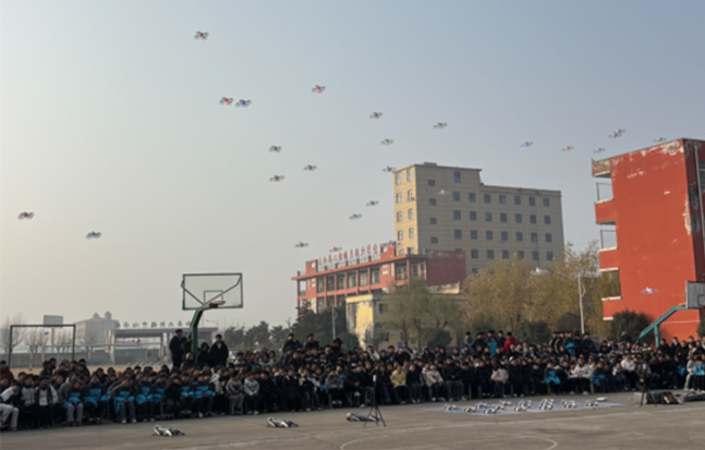 12月18日上午,太和县科协携手太和科技馆走进我校,为六、七、八年级全体学生带来一场沉浸式科普盛宴。空气炮喷射出无形的“力量波”,乒乓球机关枪连发趣味拉满;机器人灵活舞动身姿,无人机编队变幻出多样阵型,惊艳全场的表演引得同学们阵阵欢呼。同学们围拢观察、踊跃提问。