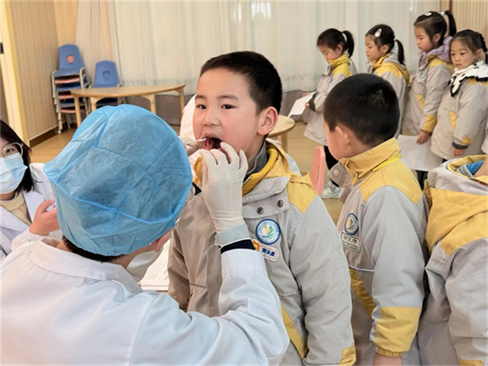 活动前期,各班发放《家长知情同意书》,本着“自愿参与”的原则开展此次牙齿涂氟。活动时,孩子们在教师的引导下有序排队,勇敢地张开小嘴。医护人员一边亲切地安抚幼儿情绪,以鼓励和表扬消除幼儿紧张感,一边严谨细致地进行口腔检查和涂氟操作。整个过程轻松愉快,充满了关爱。