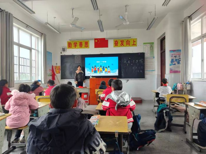 当天下午,各班级精心组织“我有一个梦想”主题班会。各班级以不同形式展开梦想对话。三年级教室里,孩子们正用彩笔绘制“梦想树”,每一片叶子都写着一个梦想:“我希望爸爸妈妈早点回家”“我要考上大学”……稚嫩的笔迹承载着最真挚的期盼。四年级则举办了一场小型“梦想分享会”。同学们纷纷走上讲台用朴实的话语描绘着自己的梦想。分享会后,同学们自发组成“梦想助力小组”,约定互相督促学习,共同向梦想迈进......