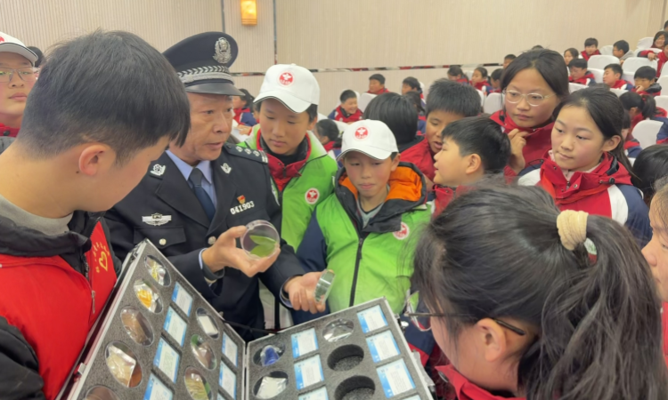 陈警官还拿出精心准备的各类毒品模型,逐一进行展示和讲解。陈警官细致说明每种模型对应的真实毒品类型、外观特征、常见伪装形式以及识别要点,通过“零距离”观察和互动提问,让学生们清晰分辨毒品的“真面目”,打破了对毒品的模糊认知,切实提升对隐蔽性毒品的识别能力。