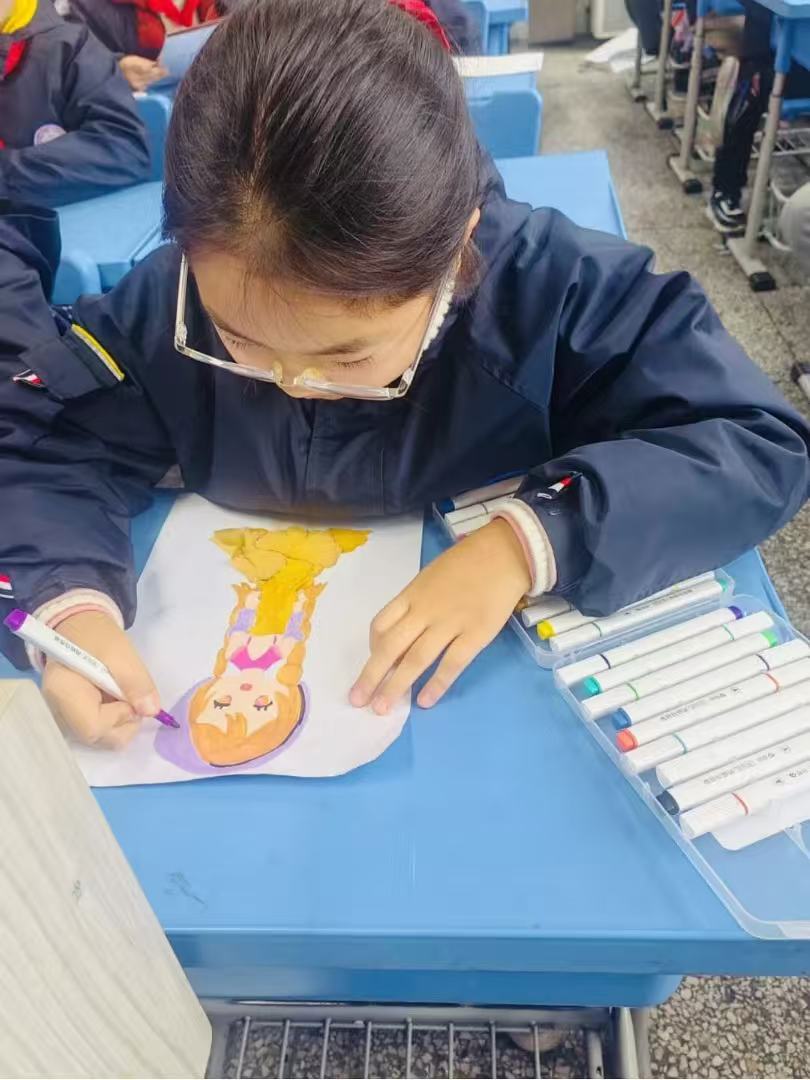 四年级美术组以银杏为美育载体,带领学生化身 “自然美术师”,紧扣四年级美术教材,围绕审美感知、艺术表现的技法实践与创意创作核心素养维度展开教学,让学生在沉浸式实践中提升审美素养与创意能力。活动前期,学生们走进校园观察银杏树的造型,细致对比银杏叶的色彩、形状与纹理,收集飘落的叶片积累创作素材,充分发挥想象力,运用拼贴、描绘、构图等艺术手法,将一片片金黄的银杏叶转化为充满创意的装饰作品,实现了自然观察、美学设计与语言表达的有机融合。