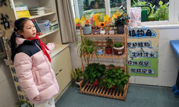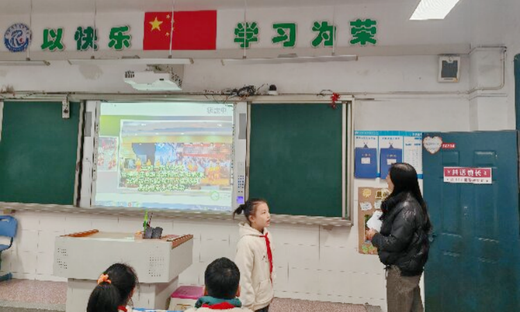 身着整齐校服的红领巾讲解员们成为一道亮丽风景。他们用生动的语言介绍班级文化:“这是我们设计的班徽,中间青苗是茁壮成长的我们……”在五(1)青苗班讲解员指着门口的班徽介绍。流畅的表达与自信的姿态,展现出学生参与文化建设的深度与热情。