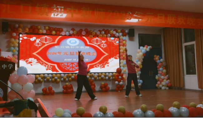 辞旧迎新启新程,凝心聚力谱华章。为丰富教职工文化生活,增进同事间的情谊,营造温馨和谐的校园氛围,12月26日,宿松县汇口初中“同心共绘教育梦”为主题的2026年元旦联欢晚会烈的在热氛围中圆满举行。汇口镇初中学校全体教职工欢聚一堂,暂别三尺讲台的谨肃,以多才多艺的表演和热情饱满的参与,共同定格了这个充满欢乐与温情的夜晚。