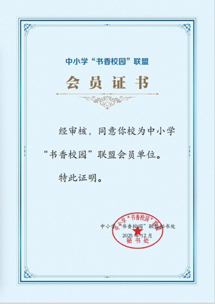 此次加入中小学“书香校园”联盟,是萧师附小阅读教育的新起点。未来,学校将以“崇真循规 读书明理”为核心理念,构建“校-班-家”三维阅读体系,坚持立德树人、学科融合,推动阅读与教育教学、校园文化、家庭教育深度融合,全力打造区域特色阅读品牌学校。学校将依托联盟平台,共享优质阅读资源,参与校际交流研讨,借力专家指导赋能,持续提质阅读教育成效,让阅读成为师生终身受益的好习惯,让书香助力学子奔赴美好未来。 (王军花)
