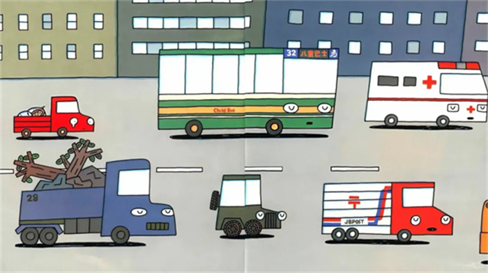 "快点儿开,我们忙着呢。"垃圾车哥哥开到小红旁边说。"对、对不起,真抱歉!"小红一边哭一边往前开。这时......
