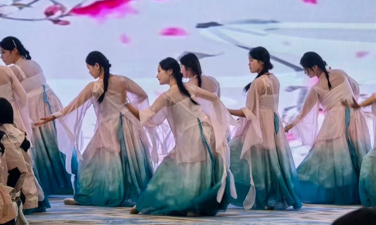 文化与艺术的碰撞,让联欢会更具深度与韵味。妆造展示《步履生花,汉韵流转》将传统汉服与现代妆造技艺巧妙融合,衣袂翩跹间让师生沉浸式感受东方美学的独特魅力;配乐诵读《木兰词》以铿锵有力的语调诠释巾帼豪情,字句间传递出传统文化的磅礴力量;《最爱》《我只在乎你》等歌曲用温柔婉转的歌声传递真挚情感,引发全场共鸣;《清河忆》《送别》则以细腻的艺术表达勾起共同回忆,让现场温情满满。