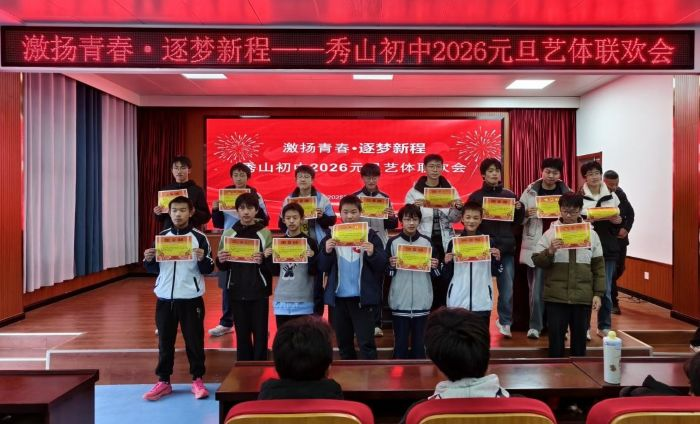 本次元旦艺体联欢活动,通过艺术与体育的融合,充分展现秀山初中“五育并举”的育人成果,同学们在欢乐中感受到了青春的力量,在拼搏中明确了奋斗的方向。学校将继续搭建多元化成长平台,让每个孩子都能在丰富的校园活动中发现自我,在逐梦新程中绽放光彩。(程竹青 官桂荣 丁建)