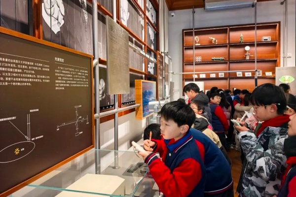 午后1时,同学们转战深空探测科普艺术馆,一踏入展厅便仿佛穿越时空置身浩瀚宇宙。在讲解员的专业引导下,大家循着深空探测的发展脉络,系统了解了从月球探测到火星探索的前沿科技成果,通过沉浸式展陈直观感受宇宙的深邃与神奇。