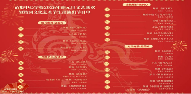 12月30日下午,太和县苗集镇中心学校隆重举办校园艺术节元旦汇演活动。当天阳光明媚,全体师生齐聚操场,在欢声笑语中以“骏马踏新元”的热情、以“艺体竞风华”的风采,共同迎来这场精彩纷呈的文化视听盛宴。