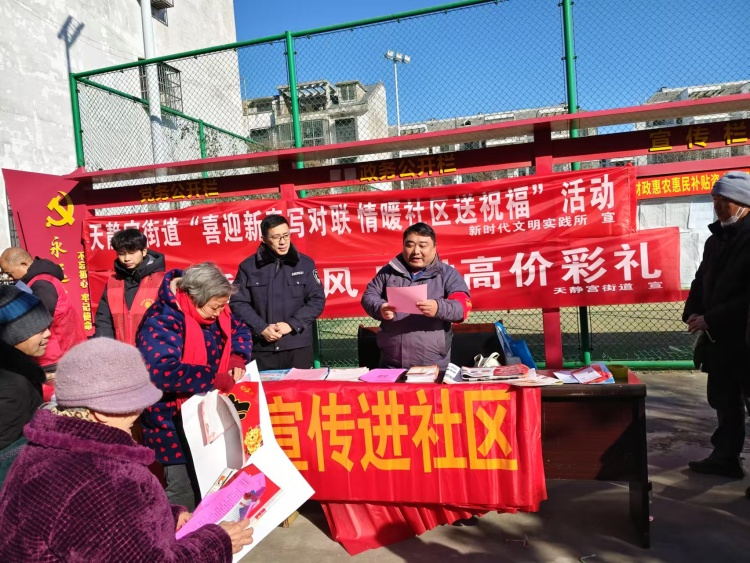 为大力培育和践行社会主义核心价值观,破除高额彩礼、铺张浪费等陈规陋习,弘扬勤俭节约、文明健康的生活方式。1月15日,涡阳县天静宫街道新时代文明实践所联合综治中心、司法所等部门在涡北社区开展“倡导婚嫁新风,反对高价彩礼”宣传活动。