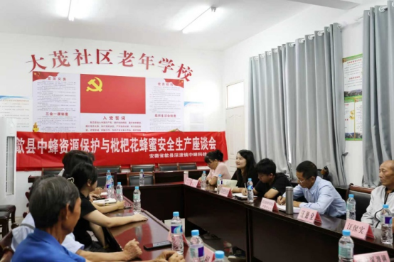 9月18日,安徽省农业大学魏国清教授与省农科院蚕桑研究所代君君老师带领研究生团队来到深渡镇,开展中蜂资源保护与枇杷花蜂蜜安全生产专题座谈会,为当地中蜂产业发展提供科技支撑。