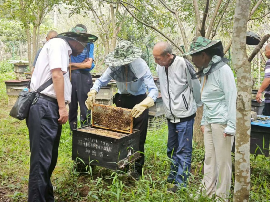 会后,专家团队一行前往深渡镇中蜂养殖基地和枇杷园防控示范基地进行实地考察。在中蜂基地,研究团队对中蜂资源进行调查和取样,将通过解剖研究蜜蜂形态特征与枇杷花的吻合度,深入探索中蜂访枇杷花的内在机制。在枇杷园里,详细考察枇杷花的生长发育情况,并采集样品,为后续开展枇杷花访花授粉试验做好前期准备工作。