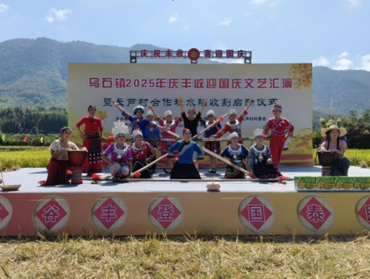 活动在欢快的锣鼓声中拉开帷幕。舞蹈爱好者们身着绚丽的服饰,《水韵江南》《中华全家福》《再唱山歌给党听》等舞蹈节目轮番登台。锅庄舞《丰收歌》以轻盈舞姿勾勒出金秋田园画卷,舞出农民对土地的深情眷恋。压轴节目竹竿舞《跳起来》以灵动的舞姿、欢快的节奏,既展现了各族群众团结和睦的深厚情谊,又传递出对丰收年的美好祝愿,引得现场观众掌声连连。
