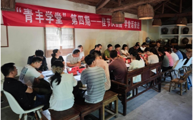 佳节庆团圆 学堂话奋进。9月28日,黄山区永丰乡“青丰学堂”第四期活动在山里研工社民宿内开展,永丰乡领导班子成员、全体青年干部以及山里民宿创始人共同参加本次活动。