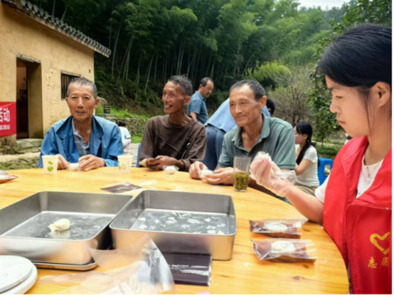 近日,板桥头乡庙山村新时代文明实践站的志愿者们带着月饼原料、制作工具与村里老人围坐在一起,一边揉面拌馅,一边陪着老人拉家常,忆往昔、说变迁,一句句暖心话语在空气中流转。月饼的香甜与节日的喜悦交织,让这个秋日显得格外温馨。