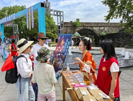 一杯香茶为您解忧。“阿姨,尝尝我们的香风茶,解解渴!”在登封桥附近的免费茶水摊前,志愿者们正将一杯杯热茶递到游客手中。香风茶的清香在唇齿间流转,为游客解渴的同时又舒缓了一身的疲惫。
