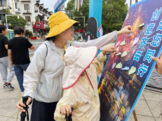 “这种形式既有趣又有意义,感觉自己真的参与到了景区的建设中!”来自杭州市的游客陈女士带着孩子认真贴上便签,孩子还在书筒旁画了一幅登山游览简笔画,引得周围游客会心一笑。一张靓影美好回忆。“看这里!笑一笑!”在志愿服务点,“花仙子”和前来游玩的游客合影留念。背景中,悠悠横江水、古朴登封桥与游客的笑脸相映成趣。作为“一张靓影美好回忆”活动的核心区域,当地精心布置了打卡场景,“花仙子”不仅协助拍摄,还根据游客需求推荐最佳拍摄角度,时而客串“摄影师”记录全家福。