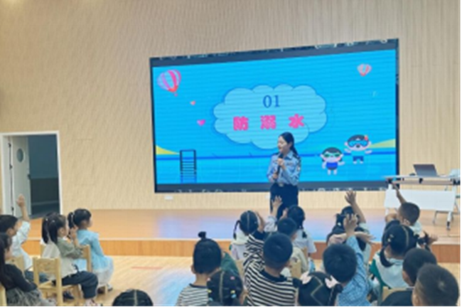 活动伊始,民警从交通安全知识入手,通过朗朗上口的安全儿歌、趣味十足的交通模拟小游戏,让孩子们在互动中轻松认识常见交通标志、理解信号灯含义、牢记“一停二看三通过”的过马路要诀。随后,民警聚焦防拐骗安全教育,通过情景模拟还原“陌生人送零食”“冒充家长朋友接走”等常见诱骗场景,直观展现危险陷阱。同时耐心讲解防范技巧,教会孩子们如果在公众场所与家人走散或遭遇危险,可及时向工作人员、商场保安求助,提升自我保护能力。最后,民警通过播放防溺水安全趣味动画,与孩子们展开互动。“没有大人陪同能不能去河边玩呀?”“遇到同伴落水应该怎么做?”孩子们积极举手、踊跃作答,在轻松欢乐的氛围中掌握防溺水安全知识。