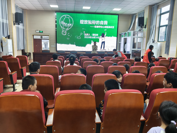 为关爱青少年心理健康,助力其阳光成长,10月17日,一场以“绽放独特的自我”为主题的心理健康讲座在肥东县杨塘学校成功举办。本次活动由古城镇妇联、镇科协、黎明社区社工站携手肥东县鑫宇社会工作发展中心联合主办,特邀资深心理讲师谭松林老师担任主讲。
