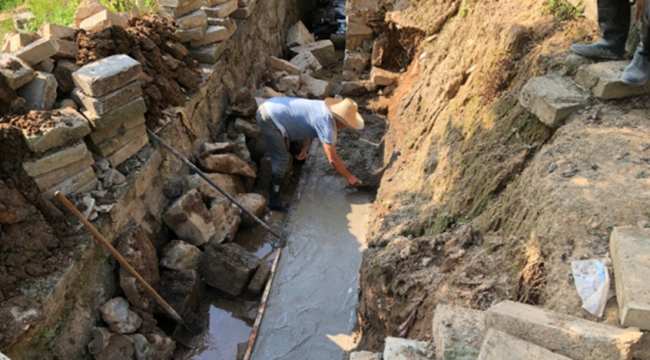 抢修过程中,施工人员顶着间歇性降雨,先对松动的石块进行清理,再采用“浆砌石+混凝土浇筑”的方式对损毁墙体进行重建,同步修复断裂的灌溉水渠。村委会干部全程驻守现场,协调解决物料运输、人员调配等问题,确保抢修高效推进。经过抢修,倒塌石磅已完成主体修复,灌溉水渠恢复通水,道路安全隐患彻底消除。