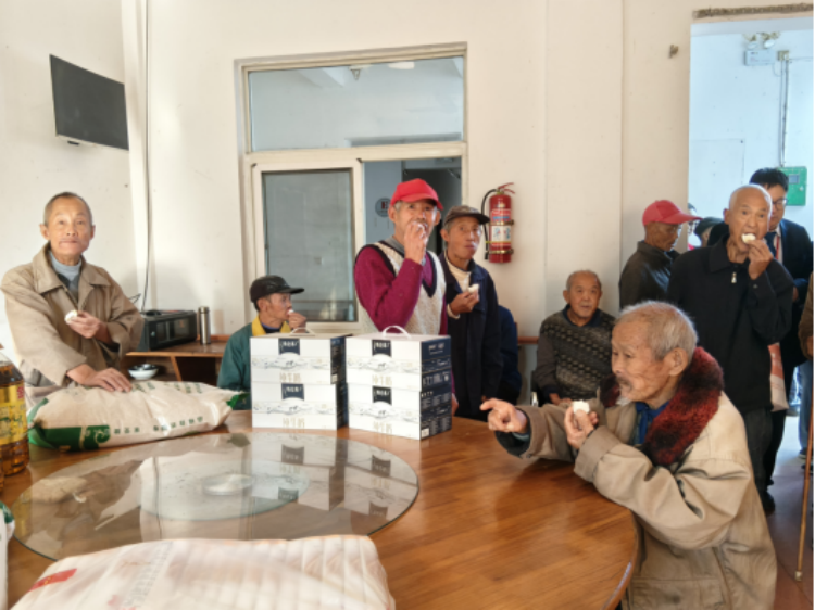 义诊结束后,大家围坐在一起,品尝着由镇干部亲手制作的桂花糕,软糯香甜的糕点承载着浓浓的关怀。老人们一边品茶吃糕,一边分享生活点滴,畅谈家常趣事,现场洋溢着欢声笑语,气氛温馨融洽。