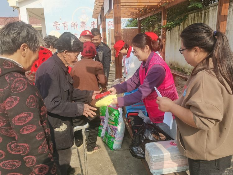 发放现场,志愿者分工明确、有条不紊。有的忙着清点物资、登记造册,有的帮助群众搬运物品,还有的耐心与群众交流,详细询问他们的身体状况和生活中遇到的困难,并向他们宣传最新的惠民政策。“现在政策真是太好了,不仅给我们送来了生活物资,还关心我们的身体,真是太感谢你们了!”家住关帝庙镇黄屯村的张奶奶接过物资,脸上露出了感动的笑容。