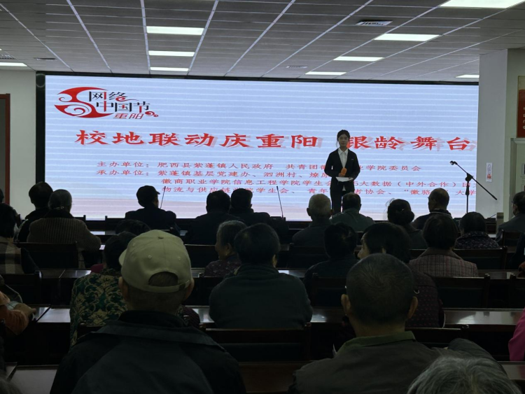 10月29日下午,肥西县紫蓬镇老年学校紫蓬家园分校内欢声笑语、暖意融融。为进一步深化校地合作,赋能乡村振兴,由紫蓬镇人民政府与共青团徽商职业学院委员会联合主办的“网络中国节·重阳”文艺汇演热烈举行,徽商学院学生志愿者以青春活力传递尊老敬老情怀,为银龄群体送上节日祝福。