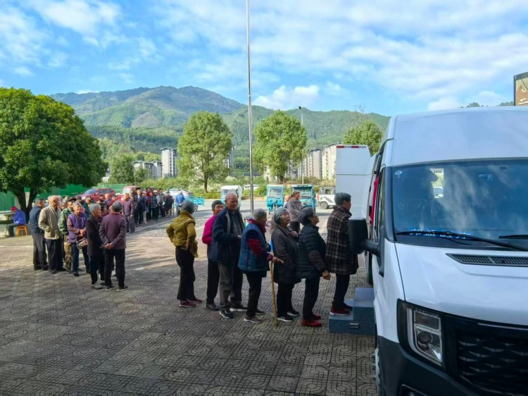 许多老年人常有呼吸不畅、咳嗽等不适,但专程前往大医院检查往往多有不便。因此,这项直达村口的免费胸部拍片服务一经推出,便深受老年村民欢迎。检查活动自当天上午8点持续至下午3点。清晨七点,流动体检车已静静停驻在村委会门口,银白色车体在晨光中格外醒目。按照预约时段,老人们陆续抵达,工作人员高效有序地为他们逐一建立个人电子健康档案,引导大家排队接受专业、便捷的DR影像检查。活动现场,村医杨医生还向老人们发放了健康知识宣传手册,耐心讲解日常保健要点,提醒大家增强健康防护意识,筑起健康屏障。