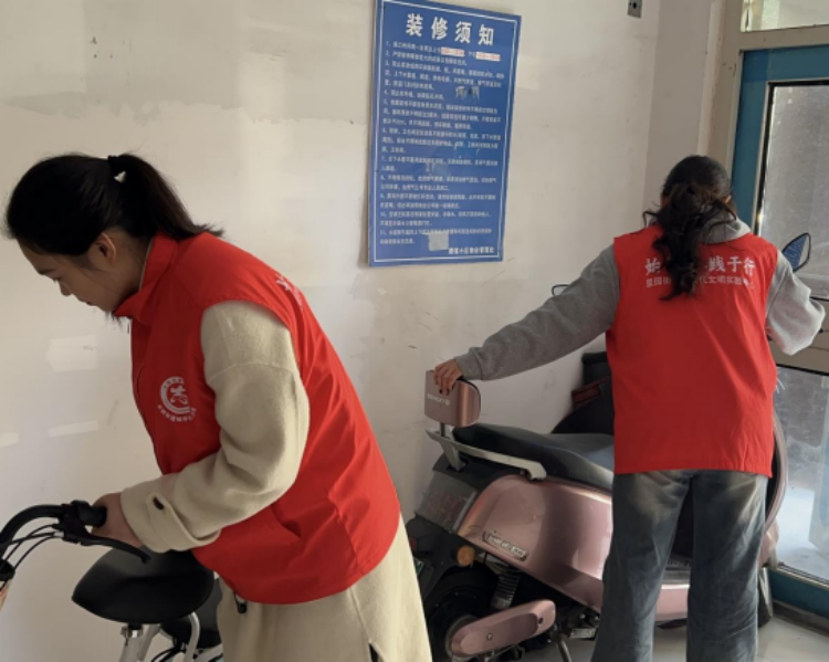 整治工作启动以来,星园街道福宁社区工作人员全员上阵,分工明确,责任到人。大家每日轮流深入德铭和华都两大安置小区,耐心地将楼道内堆放的杂物逐一清理,畅通了“生命通道”;将随意停放的电动车摆放至指定区域,并劝导居民规范充电,维护了公共秩序与安全;同时,对小区内的消防器材进行了全面细致的检查,做到防患于未“燃”。